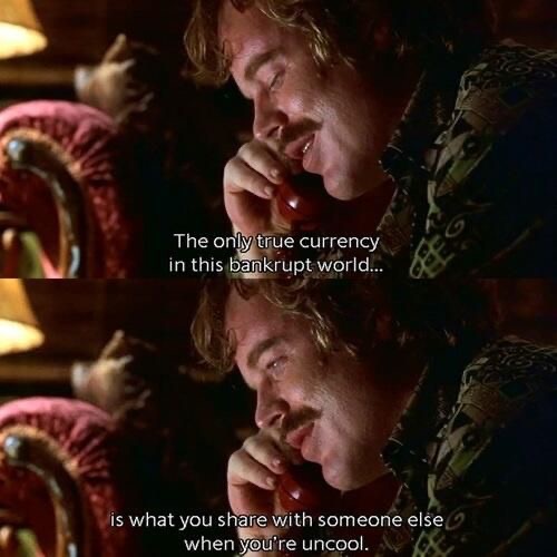 So what can we make of Cameron Crowe and the concept of cool in Almost Famous? Whether it be the world of rock music in the 70s or the age of social media today, authenticity is at a premium in the culture. This movie explores a time when the musicians individuality was preyed upon by cooperations and the musicians sold out. The result has been a fragmented cultural experience where expectations for people are high and the importance of art is discarded. To Crowe cool is the brave act of optimism and authenticity in the face of a world ready to cast judgment for literally anything.